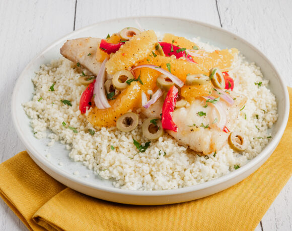 Balinese Steamed Trout, Brown Rice, Soy Ginger Cauliflower, Pickled Chiles, Crispy Shallots