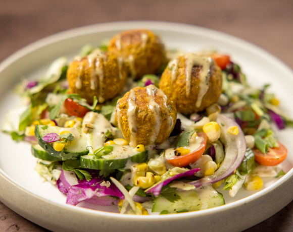 Roasted Corn & Cabbage Desi Salad with Chickpea Masala Balls