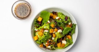 This salad brings together all the best parts of autumn: the cozy sweetness of roasted butternut squash, the satisfying crunch of toasted pumpkin seeds, the tangy pop of dried cranberries, and the creamy saltiness of feta. And to top it all off, a silky-smooth maple dressing that ties it all together with just the right…