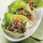 Based on a popular Chinese dish, these fun wraps also make appealing appetizers for entertaining. Make it a meal: Serve with chile-garlic sauce and rice vinegar for extra zip; toss diced mango and strawberries with lime juice for a quick dessert.