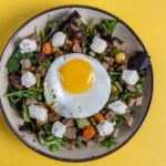 Spring Veggie Fried Egg and Turkey Sausage Breakfast Salad with Green Goddess Dressing